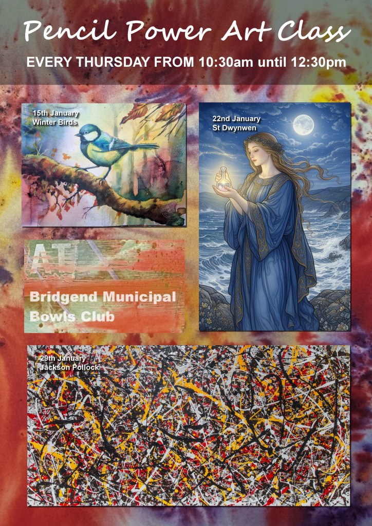 A weekly Art Class at Bridgend Municipal Bowls Club Angel Street, Bridgend.