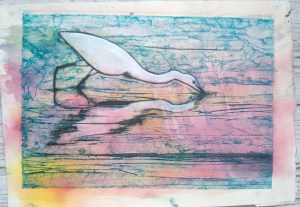 egret collagraph 5