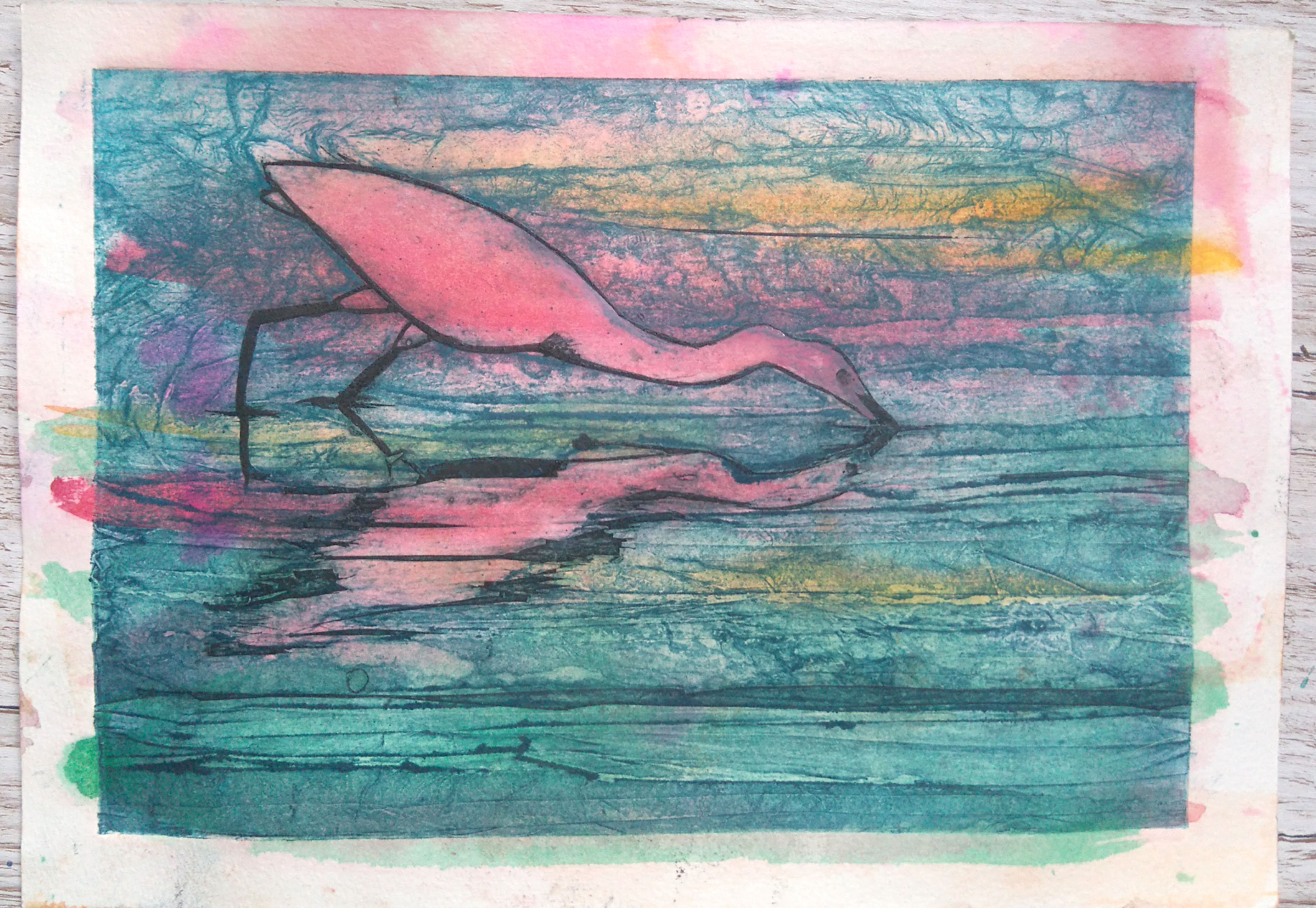 egret collagraph 6
