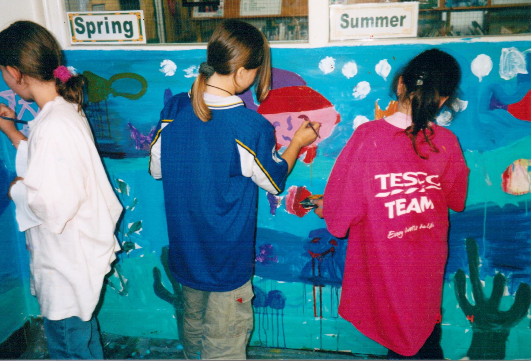 The Big Arts Week is organized by the BBC in order to promote the arts as alternative careers to be considered by children in schools nationwide. It is entirely voluntary by the artists who wish to be involved. Nina painted a mural on the school premises using the children’s designs, with pupils of the school also getting involved in the painting.