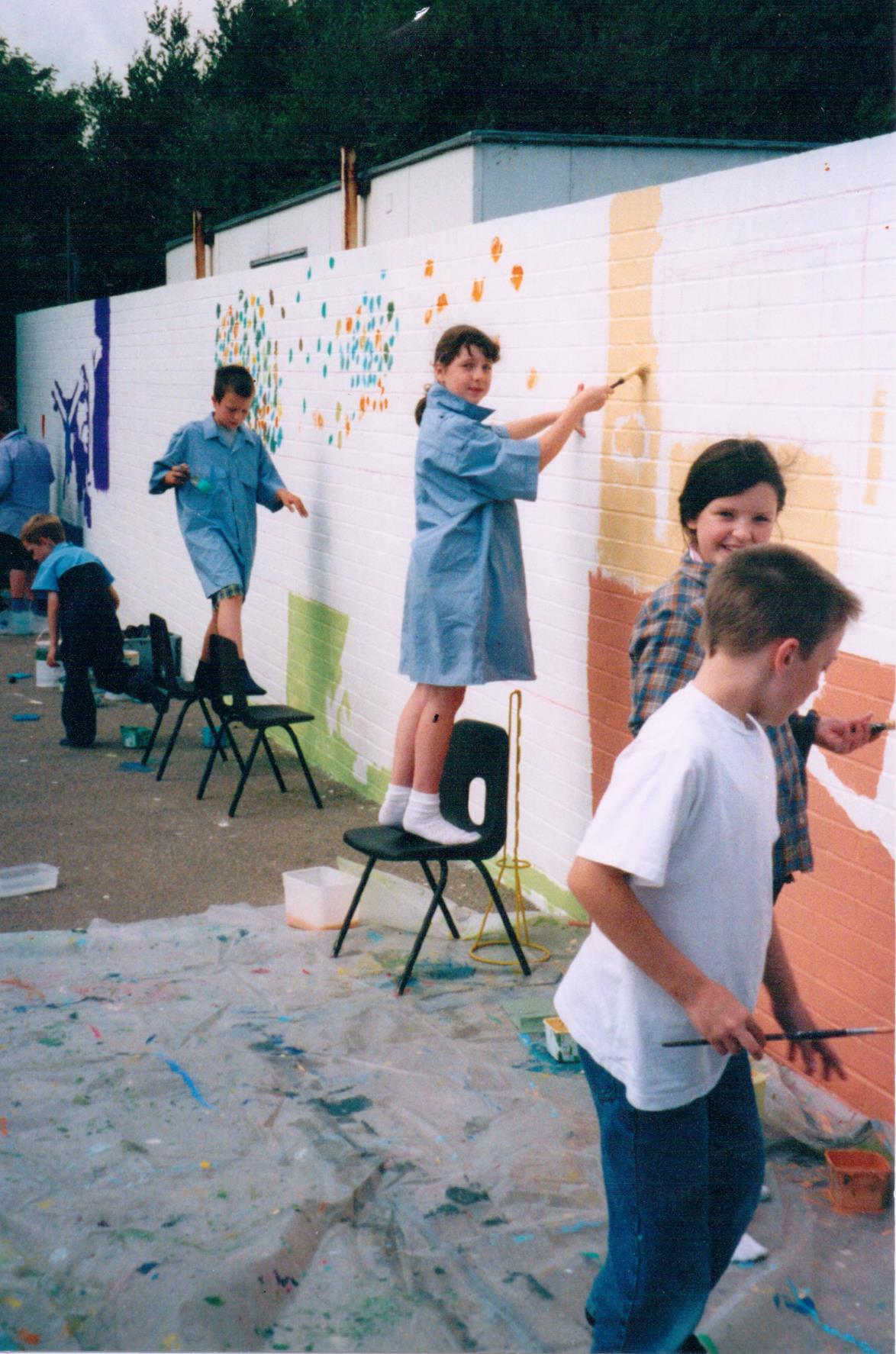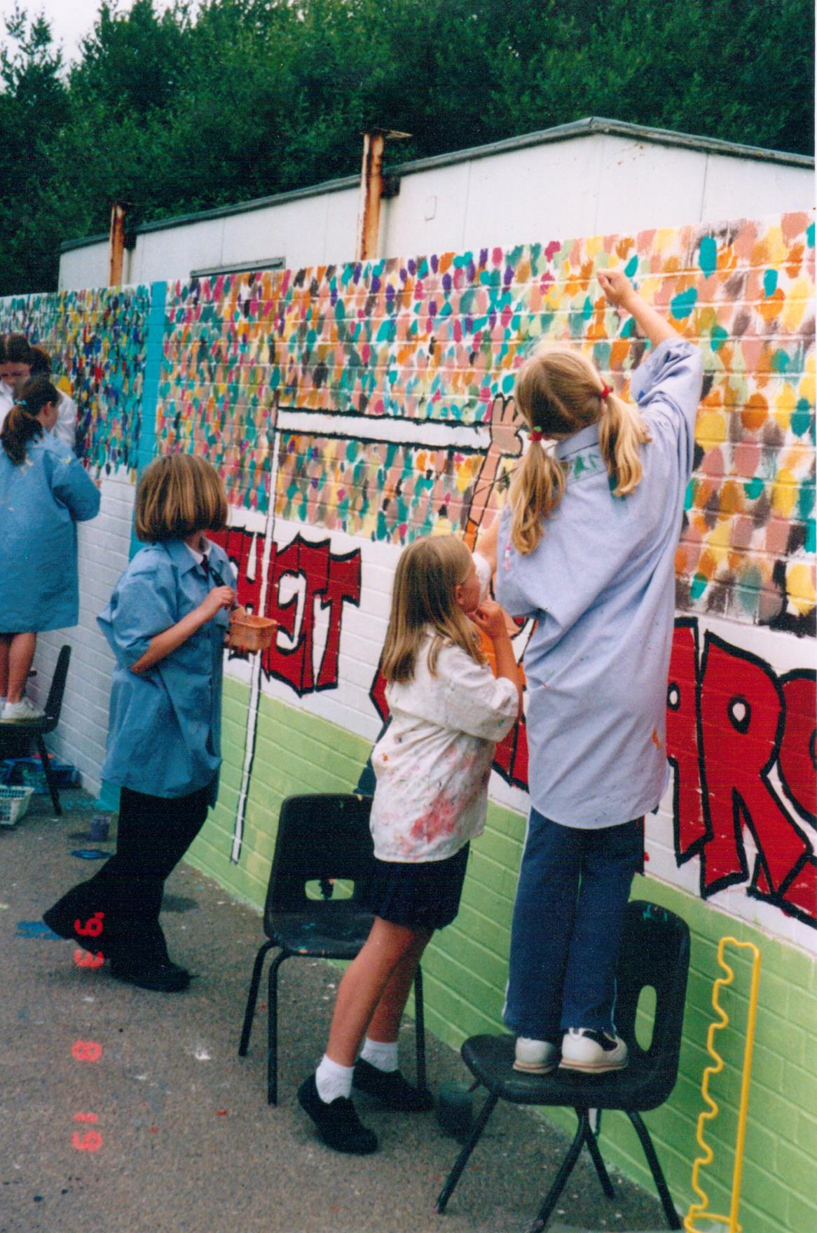 The Big Arts Week is organized by the BBC in order to promote the arts as alternative careers to be considered by children in schools nationwide. It is entirely voluntary by the artists who wish to be involved. Nina painted a mural on the school premises using the children’s designs, with pupils of the school also getting involved in the painting.