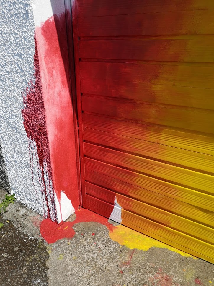 Garages on the corner of Augustine Way, Haverfordwest. Pembrokeshire.