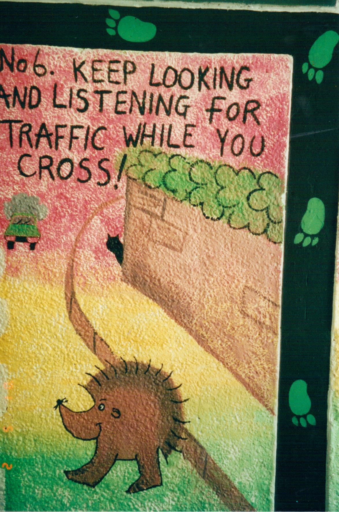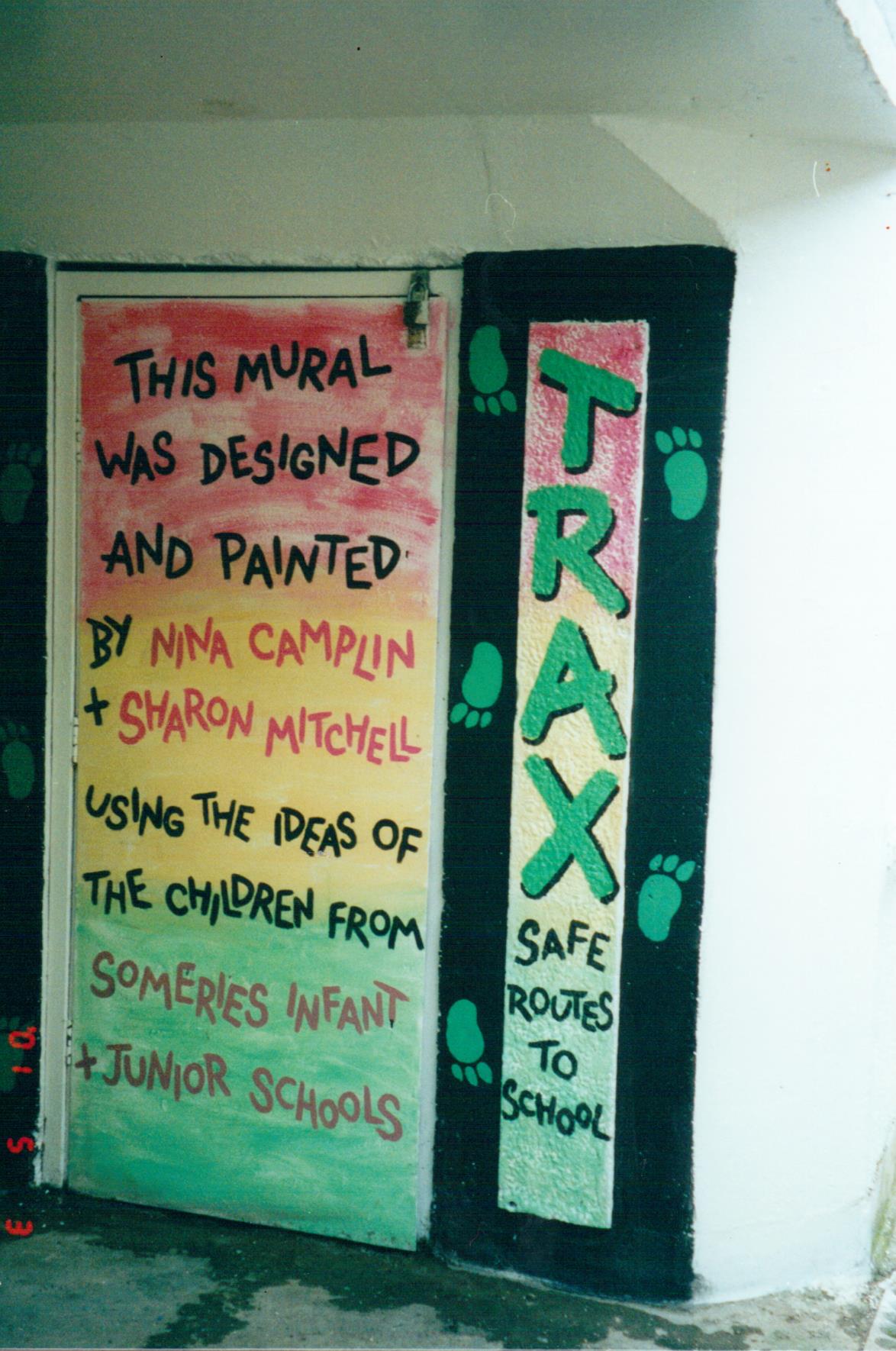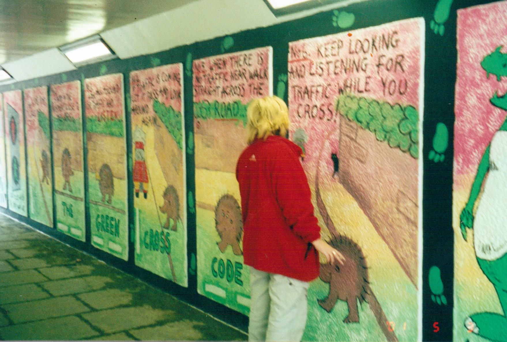 A subway mural commissioned by the council and sponsored by Asda to promote the ‘Walk to School’ campaign. Designs were adapted from the Environment of Transport Literature and painted by myself and local artist Sharon Mitchell.