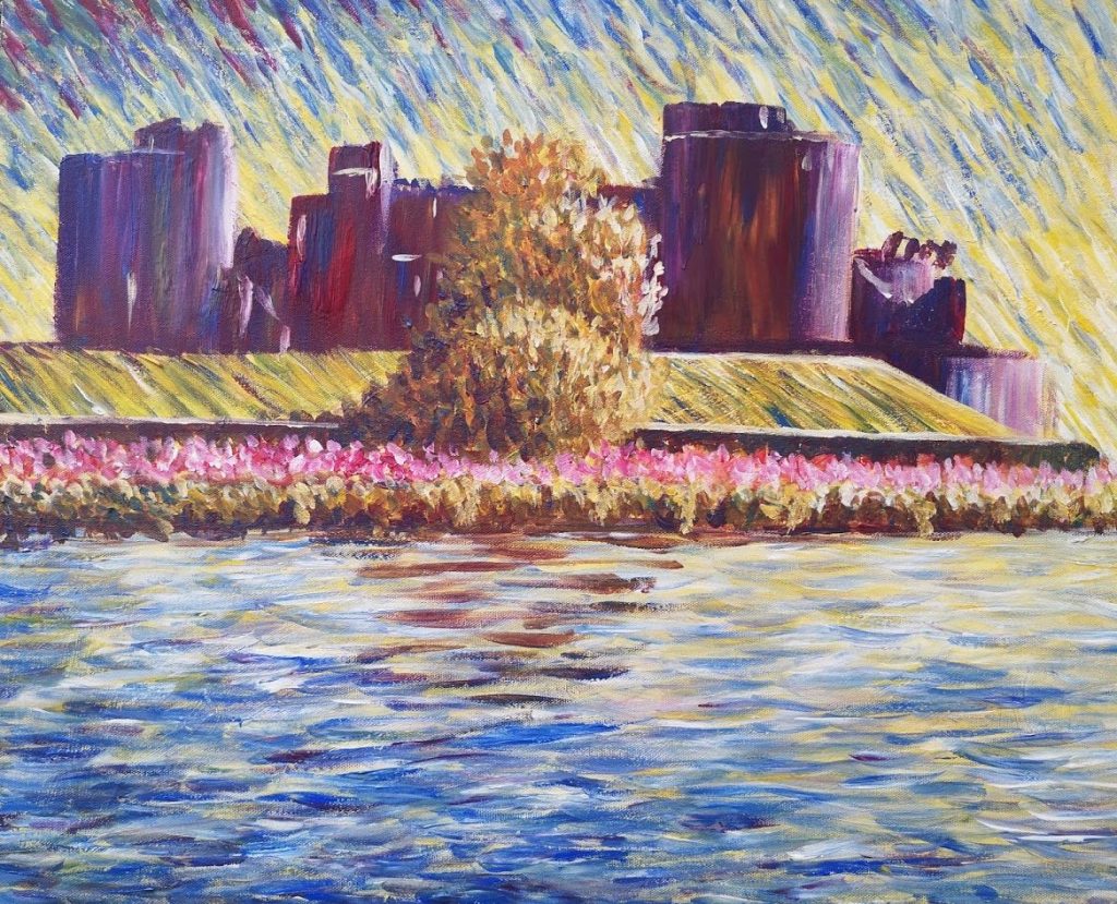 Caerphilly Castle in the style of Van Gogh Caerphilly Castle in the style of Van GoghAcrylics on recycled canvas40cm x 50cm £120 Caerphilly Castle in the style of Van Gogh Acrylics on recycled canvas 40cm x 50cm £120.00 Share this: Click to share on X (Opens in new window) X Click to share on Facebook (Opens in new window) Facebook Like Loading...