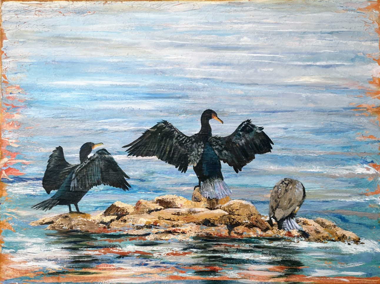 Cormorants Cormorants Acrylics on recycled canvas81cm x 101cm £250 Cormorants Acrylics on recycled canvas 81cm x 101cm £250.00 Share this: Click to share on X (Opens in new window) X Click to share on Facebook (Opens in new window) Facebook Like Loading...