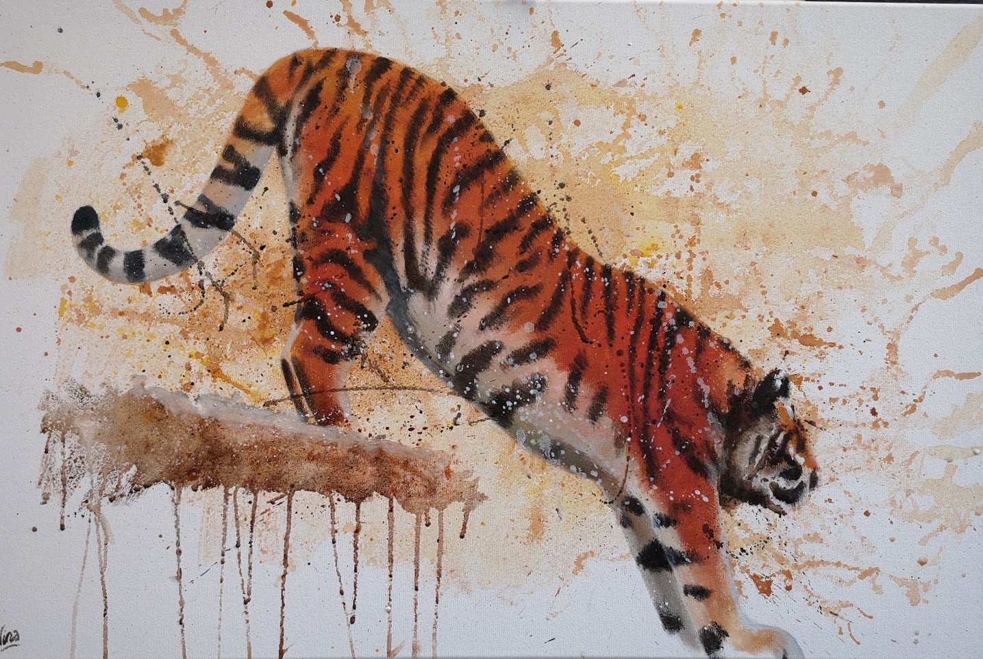 Descending Tiger Descending Tiger Acrylics on canvas60cm x 90cm £250 Prints available from £25 Descending Tiger Acrylics on canvas 60cm x 90cm £250.00 Descending Tiger A4 Print £25.00 Share this: Click to share on X (Opens in new window) X Click to share on Facebook (Opens in new window) Facebook Like Loading...