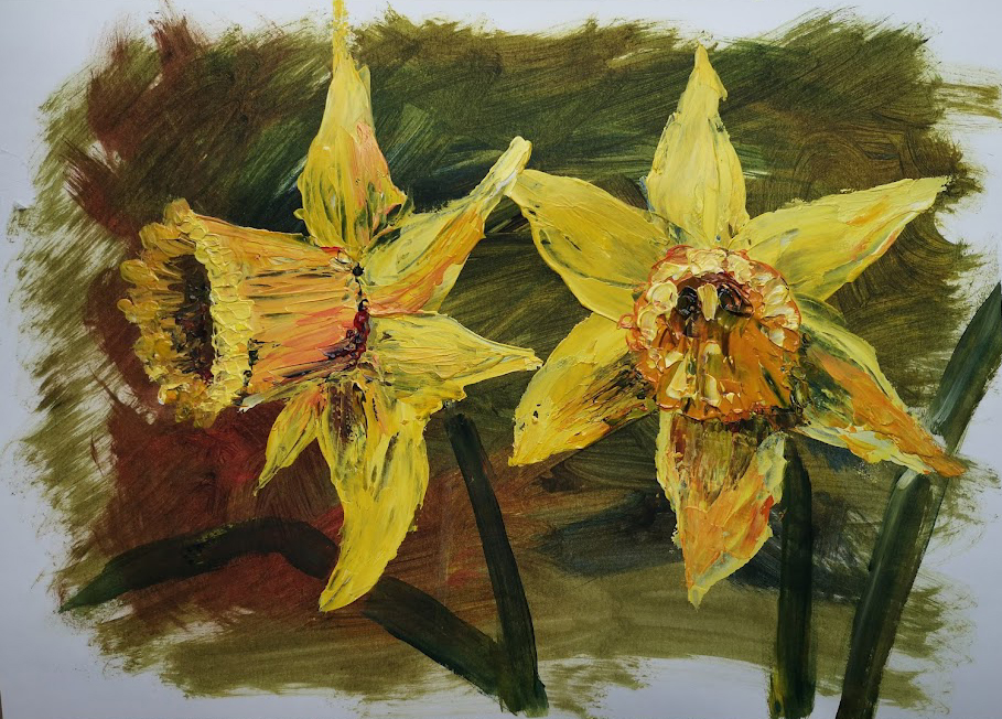 Daffodil Duo Daffodil Duo Acrylics on watercolour paper 29.7cm x 42cm (unframed) £75 Daffodil DuoAcrylics on watercolour paper 29.7cm x 42cm (unframed)£75.00 Share this: Click to share on X (Opens in new window) X Click to share on Facebook (Opens in new window) Facebook Like Loading...